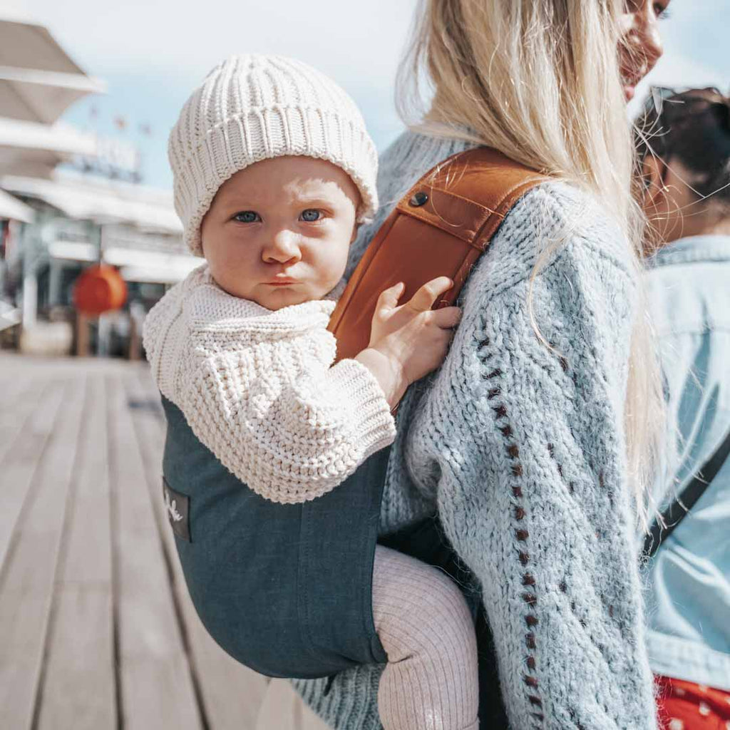 Unsere Toddler-Rückentrage, die Rookie Revolution, bietet höchsten Komfort für Kleinkinder und kann auch als Brusttrage verwendet werden. Mit ihrem attraktiven Design, einschließlich veganer Lederschultergurte, überzeugt sie nicht nur optisch, sondern auch durch ihren hohen Tragekomfort auf dem Rücken.