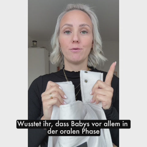 Zahnende Babys in der oralen Phase nuckeln oft an den Schultergurten einer Babytrage. Schütze deine Trage mit Schultergurtschonern vor Verschmutzungen und gebe deinem Baby eine saubere Kaufläche.